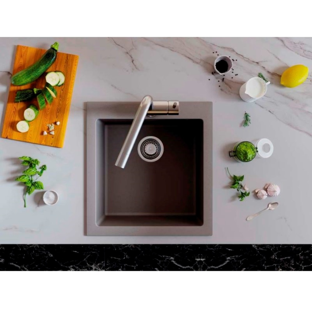 Мойка кухонная Omoikiri из коллекции Bosen 47-GR имеет размеры 470х500 мм., изготовлена из искусственного гранита. Форма — прямоугольная, одна чаша без отверстия для смесителя. Сифон в комплекте. Ширина чаши 40. Подстольный монтаж.