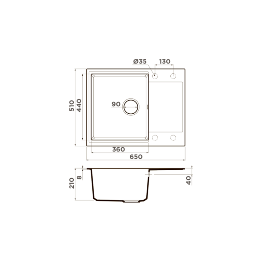 Мойка кухонная Omoikiri из коллекции Daisen 65T-BL имеет размеры 650х510 мм., изготовлена из искусственного гранита. Форма — прямоугольная, одна чаша без отверстия для смесителя. Сифон в комплекте. Ширина чаши 36. Врезной монтаж. Имеется крыло.