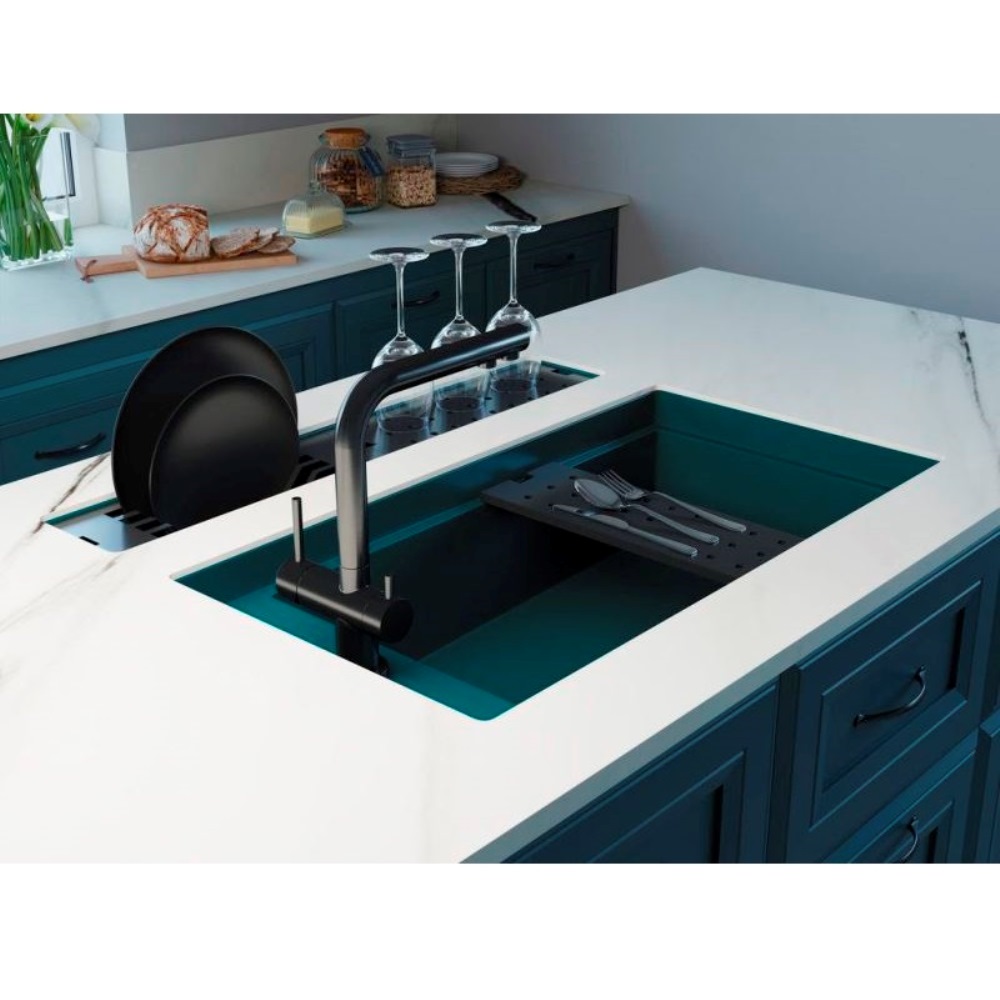 Мойка кухонная Omoikiri из коллекции Kinaru PRO 86-U/I-GB имеет размеры 860х460 мм., изготовлена из искусственной керамики. Форма — прямоугольная, одна чаша без отверстия для смесителя. Сифон в комплекте. Ширина чаши 69,4. Врезной и подстольный монтаж