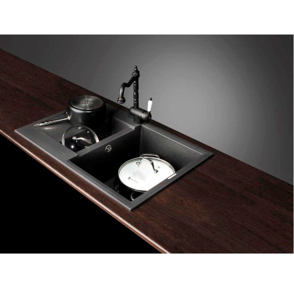 Мойка кухонная Omoikiri из коллекции Sakaime 78-2-SA имеет размеры 780х500 мм., изготовлена из искусственного гранита. Форма — прямоугольная, одна чаша без отверстия для смесителя. Сифон в комплекте. Ширина чаши 36. Врезной монтаж. Имеется дополнительная чаша и крыло.