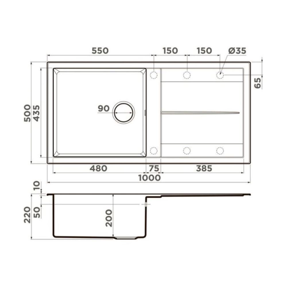 Мойка кухонная Omoikiri из коллекции Sumi 100A-WH имеет размеры 1000х500 мм., изготовлена из искусственной керамики. Форма — прямоугольная, одна чаша без отверстия для смесителя. Сифон в комплекте. Ширина чаши 48. Врезной монтаж. Имеется крыло.