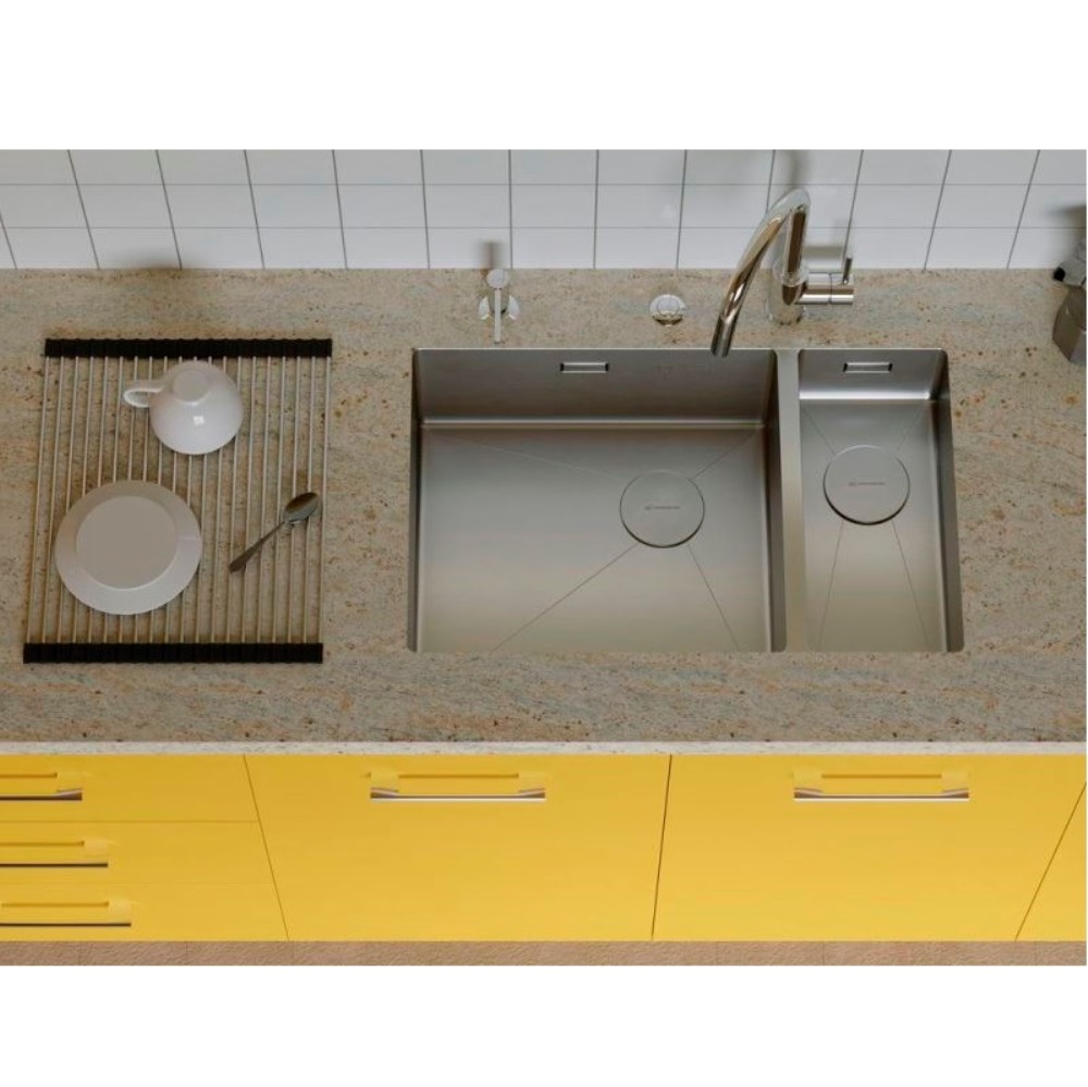 Мойка кухонная Omoikiri из коллекции Taki 69-2-U/IF-IN-L Side имеет размеры 695х440 мм., изготовлена из нержавеющей стали. Форма — прямоугольная, одна чаша без отверстия для смесителя. Сифон в комплекте. Ширина чаши 45. Подстольный и врезной монтаж, монтаж вровень. Имеется дополнительная чаша.
