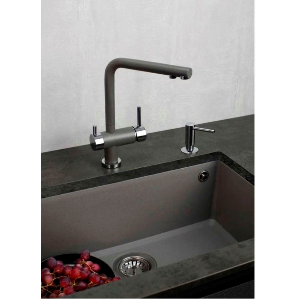 Мойка кухонная Omoikiri из коллекции Tedori 66-U-BL имеет размеры 660х420 мм., изготовлена из искусственного гранита. Форма — прямоугольная, одна чаша без отверстия для смесителя. Сифон в комплекте. Ширина чаши 62. Подстольный монтаж.