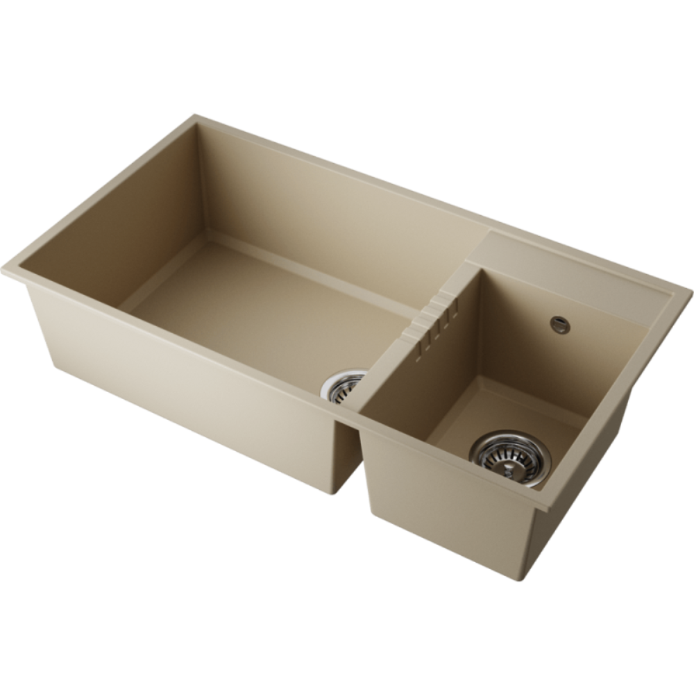 Мойка кухонная Omoikiri из коллекции Tedori 85-2-U-SA имеет размеры 850х465 мм., изготовлена из искусственного гранита. Форма — прямоугольная, одна чаша без отверстия для смесителя. Сифон в комплекте. Ширина чаши 52,5. Подстольный монтаж. Имеется дополнительная чаша.