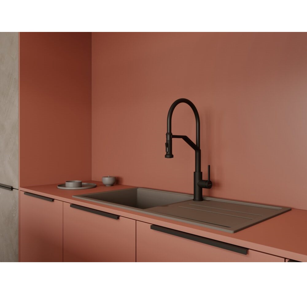 Смеситель для кухни Omoikiri Makkari 2 Plus с подключением фильтра оснащен рычажным управлением для регулировки температуры и напора воды. Горизонтальный монтаж на 1 отверстие. Гибкий излив 235 мм.