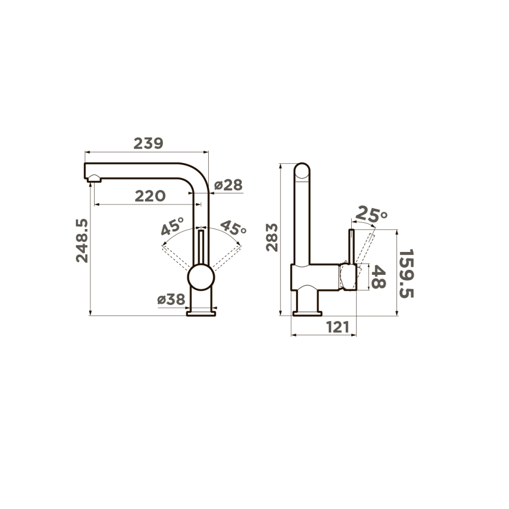 Смеситель для кухни Omoikiri Tanigawa оснащен рычажным управлением для регулировки температуры и напора воды. Горизонтальный монтаж на 1 отверстие. Поворотный излив 220 мм.