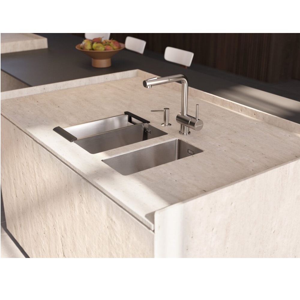 Смеситель для кухни Omoikiri Tanigawa оснащен рычажным управлением для регулировки температуры и напора воды. Горизонтальный монтаж на 1 отверстие. Вытяжной излив 191 мм.